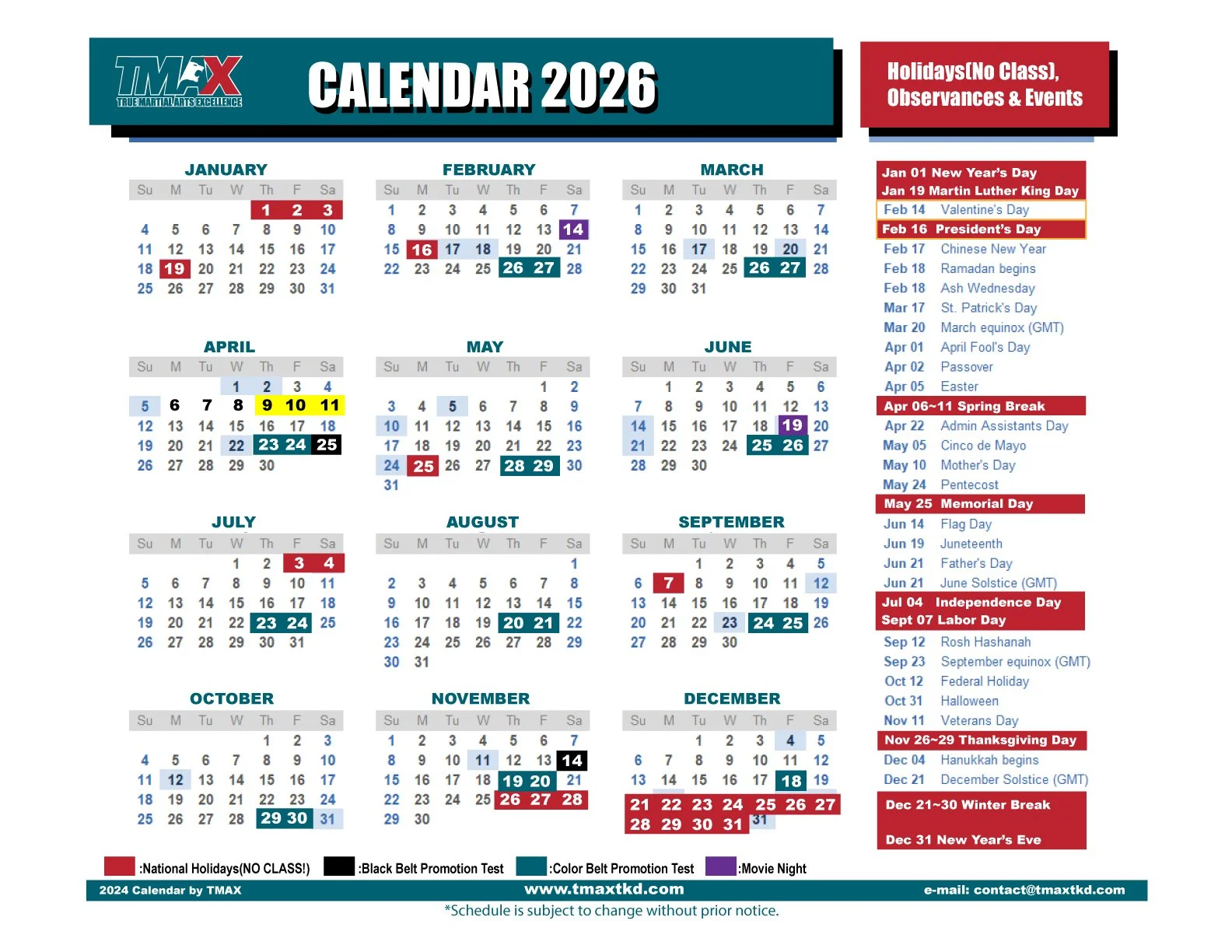 Class Schedule & Event Calendar